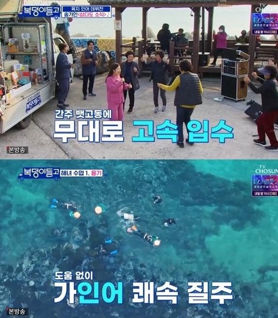 이어 사계마을 해녀들에게 복을 선물하기 위해 떠난 송가인은 해녀들을 만나 “노래하시고 선물 드리려고 보따리로 가져왔다. 노래방 기계도 다 있다”라며 분위기를 한껏 끌어올렸다.
