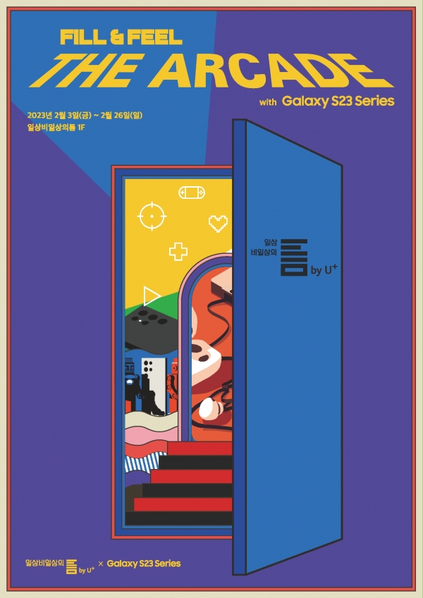 LG유플러스(대표 황현식)는 오는 26일까지 MZ소통 커뮤니티 ‘일상비일상의틈byU+(이하 틈)’에서 삼성전자의 최신 플래그십 스마트폰 갤럭시 S23 시리즈 팝업스토어 ‘일상비일상의틈byU+ x 갤럭시 S23 Series 팝업 Fill & FEEL the Arcade’를 운영한다.