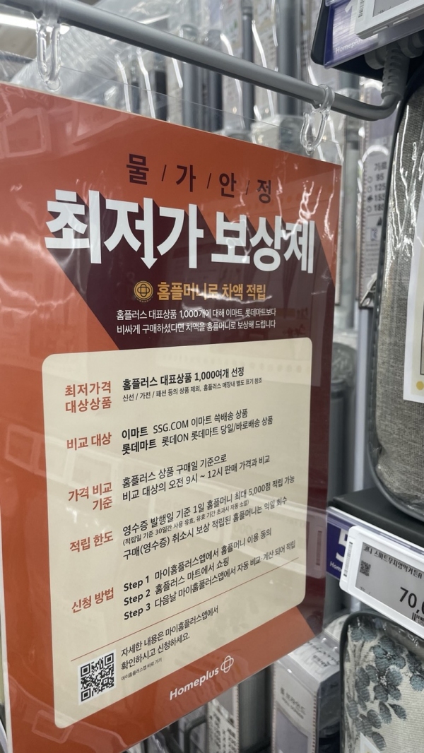고물가 시대를 맞아 마트에서 자주 볼 수 있는 최저가 보상제가 MZ세대의 눈길을 끌고있다. 티끌이라도 모아 가계 부담을 낮출 수 있다는 MZ세대의 풍속도가 새로운 흐름을 만드는 모양새다.