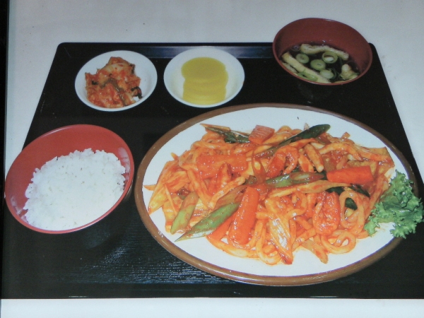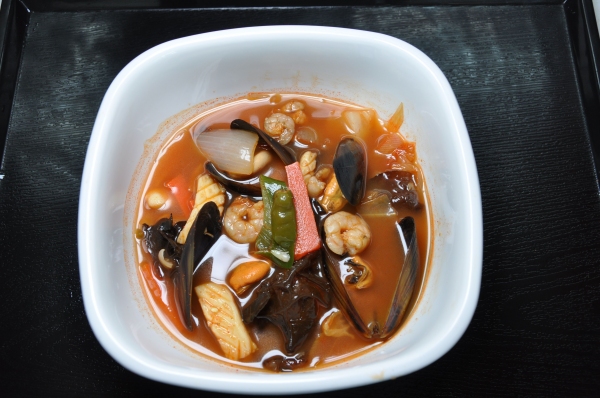 단백질이 풍부한 오징어와 키토산을 많이 함유한 새우를 넣어 한국인의 입맛에 맞게 매콤한 소스를 넣어 맛의 묘미를 살렸다는 평을 듣고 있다.