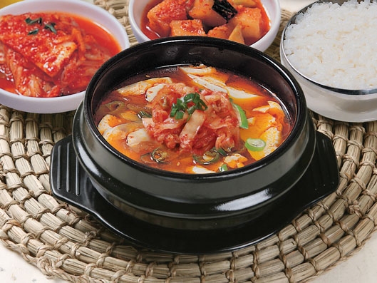 속리산휴게소(청원방향)의 맛자랑 경연대회 출품작이기도 한 김치 순두부찌개는 국내산 파주 장단콩으로 직접 순두부를 매장에서 제조해 순두부의 고소한 맛과 향이 그대로 살아 있다는 평을 듣고 있다. 오랜 시간 숙성된 김치는 아삭하고 시원하게 순두부의 맛과 어우러져 깔끔하고 독특한 맛을 낸다. 건강식품인 콩의 유익성은 달리 설명할 필요가 없을 정도다.