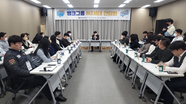 타이어뱅크㈜ 김정규 회장이 최근 세종시 본사에서 MZ세대 직원들과 타운홀미팅(간담회)를 진행했다. 이번 간담회에서 김 회장은 회사 발전을 위한 MZ세대들의 다양한 의견을 청취하고 자유로운 분위기 속에서 다양한 안건을 주제로 토론을 진행했다. 타이어뱅크 제공