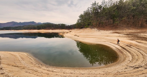 내탑수영장길 반환점이자 하이라이트인 옛 내탑수영장 모래곶. 김밥에 컵라면, 점심을 금세 해치운 일행은 농반진반의 대화를 나눈다. 왔던 길을 돌아가는 건 싫다, 저기 보이는 호반 물가 따라 사성동 붕어섬 앞까지 가보자는 얘기다. 길이 이어질까, 위험할 수도 있는데…. 가볼까? 진짜 가? … 가보자! 허튼소리가 ‘실화’가 되는 순간이다.