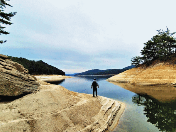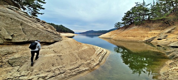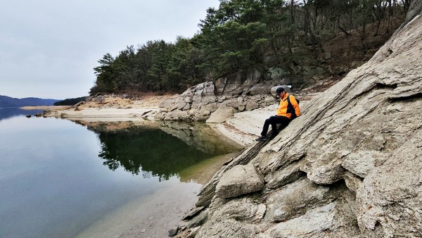 걸음걸음 내디딜 때마다, 얼마큼 왔나 뒤돌아본다. “벌써 많이 왔네.” 목적지인 붕어섬이 그다지 멀지 않게 눈에 들어온다. 이대로라면 원코스로 회귀한 팀보다 훨씬 빨리 도착할 것 같다. 감탄사는 이어진다. 숨은 비경의 설렘은 흥분으로 이어지고 몸은 전혀 힘들지 않다. 갈수록 힘이 난다. 끊이지 않는 감탄사와 웃음소리. 그리고 드디어 그 바위를 만났다.