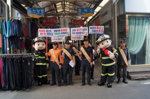 이날 불조심 홍보 캠페인은 추석 연휴를 앞두고 들뜬 분위기 속에 자칫 사소한 부주의로 발생할 수 있는 화재를 미연에 방지하기 위해 시장상인과 주민들을 대상으로 화재예방 홍보 유인물을 배부하고, 안내방송을 통해 추석 연휴기간 동안 불조심 생활화를 당부했다.
