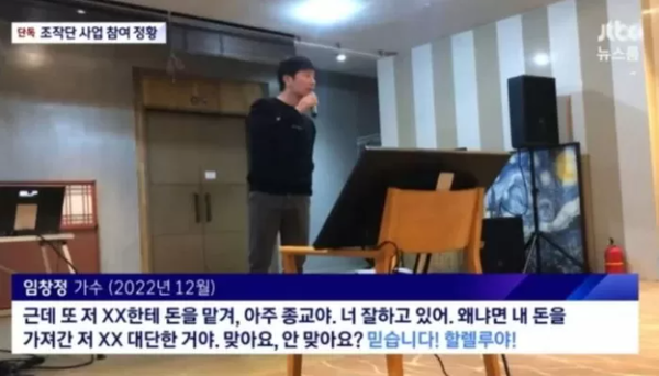 지난 1일 JTBC는 주가조작단이 개최한 투자자 행사에서 임창정이 연설을 하는 모습이 담긴 영상을 보도했다.
