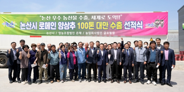 논산시는 영농조합법인 온채(대표 김영환)와 광석면 5개 농가가 연합해 설립한 글로벌팜(대표 김민수)이 재배한 상추가 대만 수출을 위해 9일 첫 선적식을 가졌다고 밝혔다.