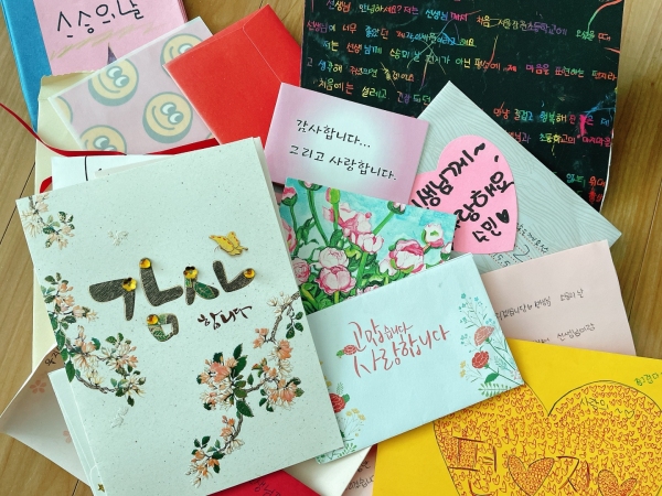 덕분에 추억이 쌓인 것 같아요. 선생님과 1년을 보내면서 특히 미술시간이 기억에 많이 남는 것 같아요. 제가 그린 정체모를 그림에 선생님 손만 닿으면 예쁜 그림이 되는 것이 신기하기도 하였고, 물감, 파스텔 등 여러 도구들을 써본 것이 너무 재미있었습니다!! 선생님의 노력과 응원이 언제나 저에게 힘이 되는 것 같습니다. 정말 감사드립니다!!