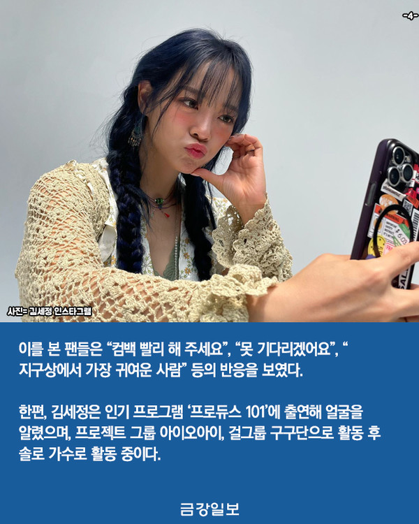 저작권자 © 금강일보 무단전재 및 재배포 금지 이지은 인턴기자 lge5519@naver.com 다른기사 보기 SNS 기사보내기 이메일(으)로 기사보내기 다른 공유 찾기 기사스크랩하기 댓글삭제 삭제한 댓글은 다시 복구할 수 없습니다. 그래도 삭제하시겠습니까? 비밀번호 닫기 기사 댓글 0 댓글 접기 댓글입력 권한이 없습니다. 댓글 내용입력 비회원 로그인 이름 비밀번호 댓글 내용입력 댓글쓰기 계정을 선택하시면 로그인·계정인증을 통해 댓글을 남기실 수 있습니다. 회원 로그인 비회원 글쓰기 이름 비밀번호 자동등록방지 로그인 옵션 창닫기 추천기사 [오늘의 금값시세] 11월 26일 금시세(순금·24k)는? 노타 주가, 급등... 호재는? [오늘의 운세] 26일 수요일 나의 운세는?