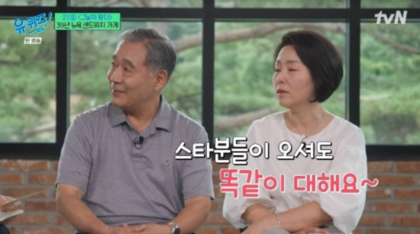 지난 13일 방송된 tvN '유 퀴즈 온 더 블럭'에는 미국 뉴욕 브로드웨이에서 39년 동안 샌드위치 가게를 운영한 김정민·김자희 부부가 출연했다.