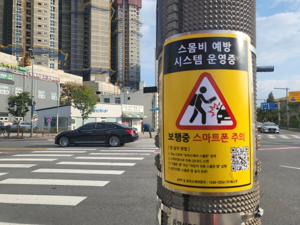 대전에도 10대가 설치돼 시범운영 중이다. 스몸비 예방 시스템이 설치된 곳에서는 인터넷 차단은 물론, 보행자 신호 시 ‘스마트폰 사용을 자제해달라’라는 음성안내도 함께 송출된다.