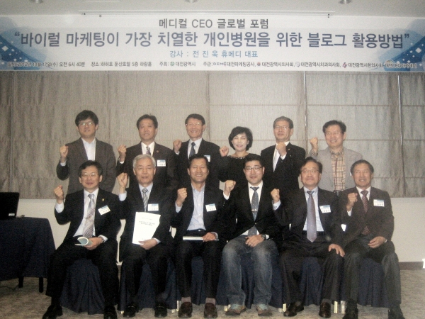 17일 대전 하히호 둔산호텔 하람홀에서 열린 제60차 메디컬CEO글로벌포럼에서 전진욱 휴메디 대표는 ‘바이럴 마케팅이 가장 치열한 개인병원을 위한 블로그 활용방법’이란 주제의 강연을 통해 “병원 마케팅의 수단으로 블로그와 SNS(소셜네트워크)가 유용한 데 ‘한발 늦었다’ 혹은 ‘과연 효과가 있을까’라고 생각해 주저해선 안 된다. 특히 대전과 같은 로컬 권역에선 지금 시작해도 결코 늦은 것이 아니다”라고 말했다.