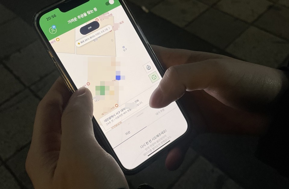 그렇게 수십 건에 달하는 콜을 무기력하게 스쳐 보내야했다. 한 디저트 매장 앞에서 간택(?)되기를 기다렸지만 배기음과 함께 날라온 라이더가 콜을 낚아채는 것을 지켜보기만 했다. 그 순간만큼은 라이더들이 매우 야속했다. 1시간이 다 되가도록 둔산동 길거리 한복판에서 쪼그려 앉은 채 휴대폰만 바라볼 수밖에 없었다.