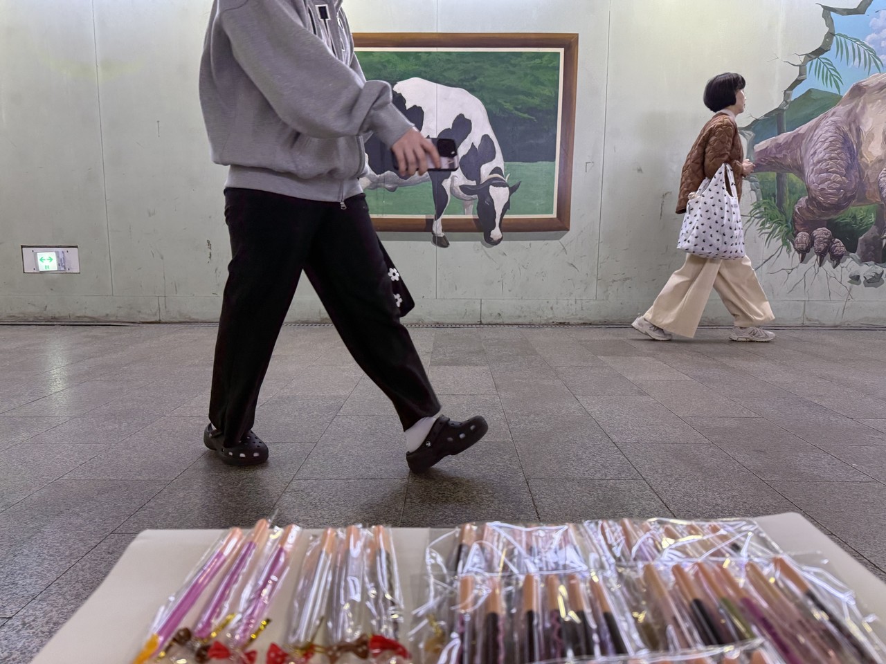 출근시간이 조금 지난 오전 10시 볼펜을 팔기 위해 대전 서구 둔산동의 갤러리아 지하보도로 내려갔다. 장사 시작을 위해 볼펜을 꺼내려는 찰나, “아가씨 여기서 뭐하는 거예요?” 한 상인이 날카로운 말투로 물었다. 오늘 하루 볼펜을 판매할 거라고 하니까 판매물품이 겹치지 않는 것을 확인한 그 상인은 그제서야 경계를 풀었다. “여기서 장사해요. 오늘 많이 팔아요”라며 자리를 떠났다.