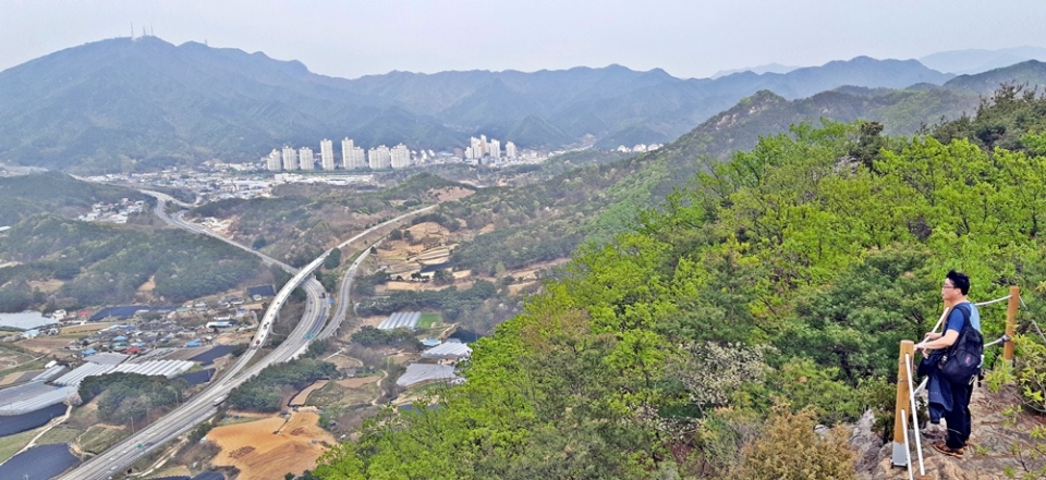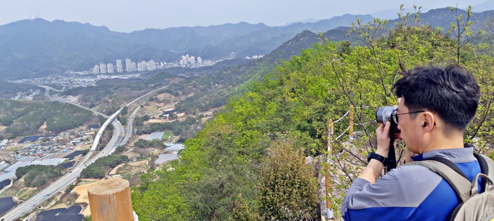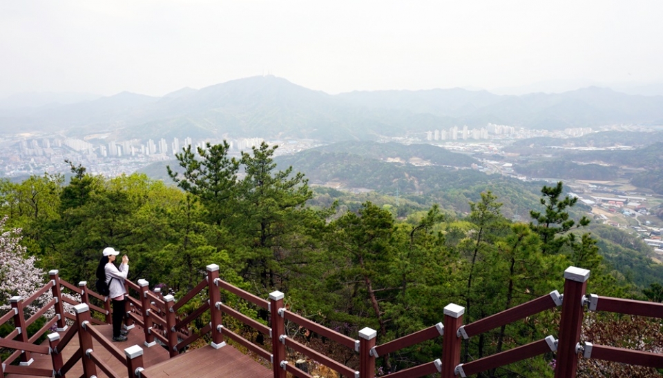 군데군데 흐드러지게 핀 산벚꽃과 산철쭉, 진달래, 개나리가 어우러진 ‘산의 봄’은 그 자체로 지친 피로를 풀어주는 비타민 역할을 한다. 올라온 길을 더듬어 살펴보면서 쉬엄쉬엄 오르다 보면 금세 오도산(336m) 정상과 마주한다. 나무계단을 다 오르면 곧 큼지막한 돌무더기를 발견하게 되는데 오도산 정상임을 알리는 신호다. 오도산에선 보문산 시루봉과 식장산이 한 눈에 들어온다.