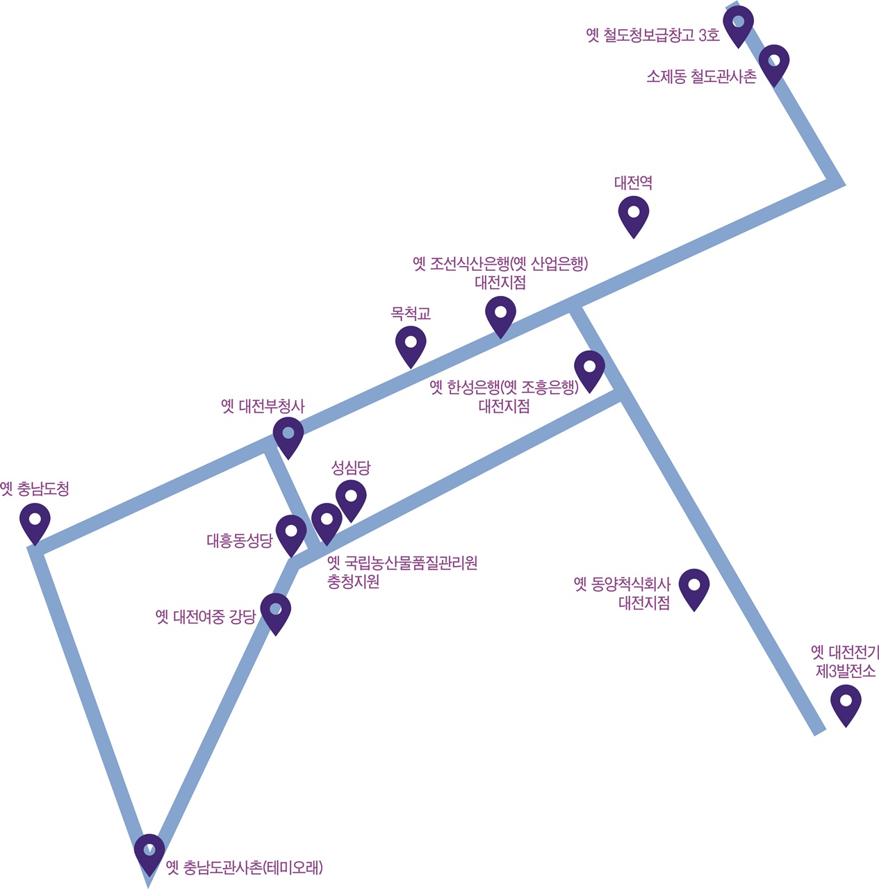 일제시대 전까지만 해도 대전은 회덕(지금의 대덕구)의 변두리였다. 그러나 일제의 식민지 자원 수탈과 맞물려 서울과 부산을 잇는 경부선철도가 계획되고 1904년 지금의 자리에 대전역이 설치되면서 일본인들이 모여들었다. 이들은 대전역을 중심으로 촌락을 형성했고 대전은 점차 도시로 발전했는데 그 중심이 바로 현재 ‘대전의 원도심’으로 불리는 곳이다. 일제는 대전역을 중심으로 가로축, 세로축으로 신작로를 만들었다. 각각 지금의 대전로와 중앙로다. 일제는 특히 경부선철도 건설과 맞물려 호남선철도도 개통했는데 대전을 그 분기점으로 삼았다. 최대한 산지를 피해야 철도건설이 빨라지기 때문에 선택한 곳이 바로 대전이다. 대전이 일약 교통의 요지로 급부상하자 대전에 정착한 일본인들은 공주에 있던 충남도청까지 대전으로 이전(1932년)시켜 대전을 충남의 수부도시로 만들었다. 충남도청이 다시 충남으로 환원돼 내포신도시로 이전한 게 2012년이니 꼬박 80년간 충남의 심장부가 대전에 있었던 셈이다.