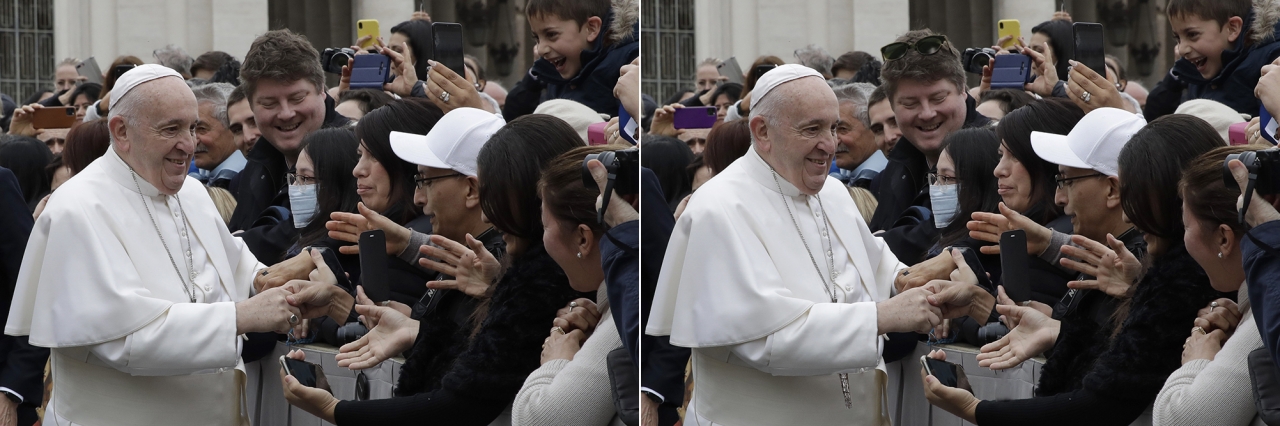 교황청은 애초 코로나19 확산 상황을 고려해 이날 일반 알현 행사를 취소·연기하는 방안도 내부적으로 검토했으나, 취소 시의 파장 등을 고려해 일단 일정대로 진행한 것으로 알려졌다.