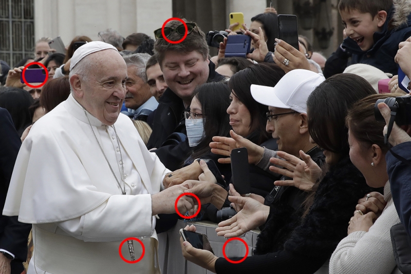 하지만 교황은 이에 아랑곳없이 신자들과 악수를 하고 어린아이들에게 키스하는 등 평소 하던 대로 이들을 환대했다.