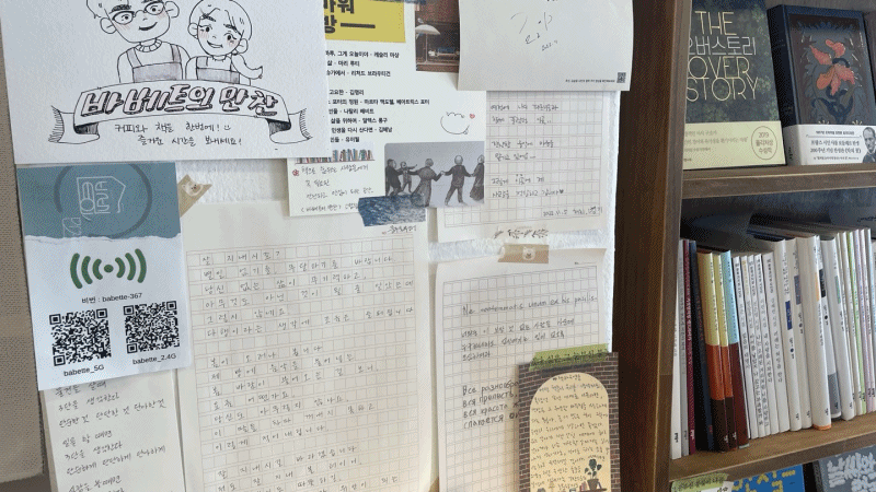 특히 대전지역 작가가 집필한 ‘파리의 아메리카노’는 물론 독립출판물 중 가장 많이 팔린 ‘스물다섯 가지 크리스마스’ 등 점주가 내색 없이 추천해주는 책은 김춘수 시인의 ‘꽃’처럼 어느새 마음 속에서 피어난다. 시원한 음료 한잔과 책장을 가득 메운 책을 구경하면서 시간을 보내다보면 어느새 공간에 집중하게 된다. 언젠가 바베트의 만찬을 다시 떠올릴 때 이 곳이 정이 가득한 공간으로 기억될 것임은 누구나 공감하지 않을까.