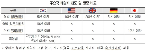 주요국의 경우 경쟁법에 형벌조항이 없거나 담합 등 일부 규정에만 형벌이 있는 데 반해, 우리나라의 경우 공정거래법 규제 유형 대부분(27개)에 대해 형벌과 양벌규정이 존재한다.
