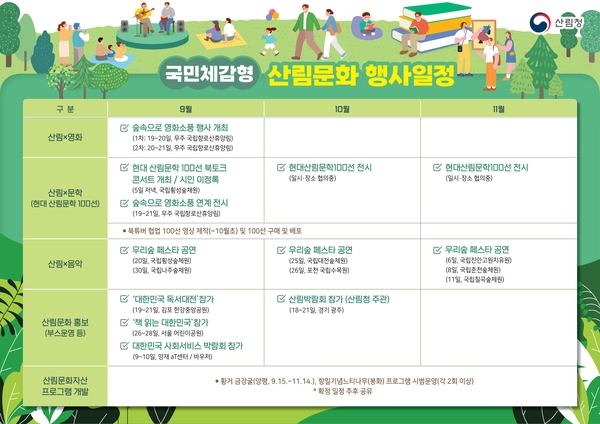 기타 자세한 일정과 참여 방법은 한국산림복지진흥원 누리집(https://www .fowi.or.kr) 공지사항에서 확인이 가능하다.