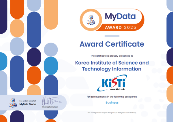 한국과학기술정보연구원(KISTI)은 마이데이터 기반 공공서비스 ‘무브메이트’가 마이데이터 어워드 2025(MyData Awards 2025) 비즈니스 부문을 수상했다고 26일 밝혔다.