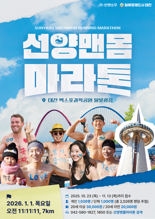 새해 첫날의 추위를 맨몸의 뜨거운 열정으로 녹이는 이색 새해맞이 축제, ‘2026 선양 맨몸마라톤’이 병오년(丙午年) 새해 첫날인 오는 1월 1일 오전 11시 11분 11초, 대전 엑스포과학공원에서 막을 올린다.
