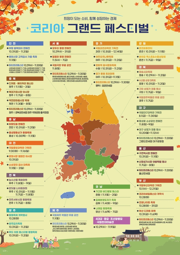 주요 혜택과 지역별 특별행사를 포함한 상세한 내용은 통합누리집(www.koreagrandfestival.kr' 또는 '코리아그랜드페스티벌.kr)과 카카오톡 플러스 ‘코리아 그랜드 페스티벌’ 채널을 통해 확인할 수 있다.