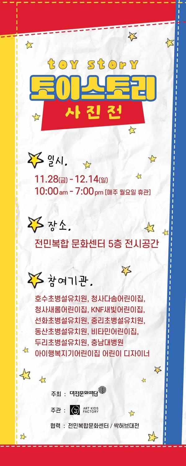 대전문화재단의 2025 유아문화예술교육 지원사업의 일환으로 아트키즈팩토리의 ‘토이스토리: 처음 친구 이야기’ 프로그램이 성공적으로 마무리된 가운데 이 성과를 공유하는 사진전이 오는 28일부터 내달 14일까지 전민복합문화센터 5층 전시공간에서 열린다.