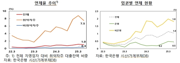 비은행 및 취약자주 중심으로 연체율 상승…6월 기준 취약자추 연체율 7.5%