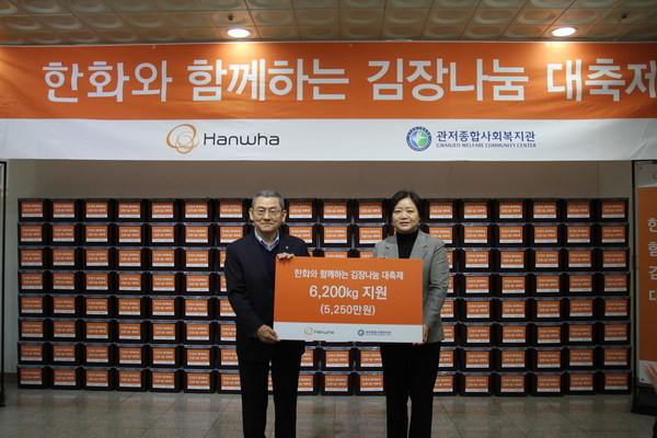김장나눔 대축제는 겨울나기에 어려움을 겪는 충청지역 취약계층 이웃들에게 온정을 나누는 행사로 올해 14년째 이어지고 있다. 행사에는 김신연 한화사회봉사단장(한화솔루션 사장)과 한화그룹 충청지역 사업장 소속 임직원 30여 명을 비롯해 박정순 관저종합사회복지관장 등 봉사자 60여 명이 참여해 구슬땀을 흘렸다. 이날 담근 김장 김치는 한화그룹의 충청지역 사업장들과 연계 중인 사회복지기관을 통해 총 620가구(10㎏씩)에 전달될 예정이다.