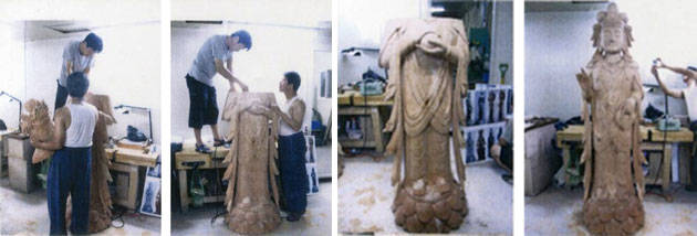 훼불(毁佛) 논란이 제기된 백제문화단지 능사(陵寺)내 협시불은 충남 부여군 부여읍 군수리에서 출토된 목조보살상을 모델로 해서 제작됐다. 한나라당 안형환 의원에 따르면 백제문화단지내 삼존불 제작은 문화재청 산하 한국전통문화학교의 전문가들이 참여했다. 삼존불은 가운데 본존불과 양쪽의 협시불로 구성돼 있다. 그러나 제작 과정에서 양쪽 협시불의 머리쪽 화관과 손 모양인 수인이 서로 뒤바뀌었다는 사실을 알게됐고, 이후 협시불의 가슴 부위를 잘라 다시 바꿨다. 이에 따라 현재 협시불의 가슴 부위에는 잘라 이은 흔적이 선명히 남아있다. 이에 대해 안 의원측은 “실제 불상을 제작한 측에 확인해보니 ‘건네준 도안대로 만들었다’, ‘총괄책임자인 A교수와 자문위원들의 의견이 일치하지 않았다’, ‘A교수가 건네준 도안대로 만들었는데 나중에 잘못 만들었다면서 나에게 책임을 떠넘기고 A교수가 직접 잘라서 바꿔 붙였다’고 주장하는 등 서로 떠넘기기로 일관하고 있다”고 지적했다. 때문에 안 의원은 삼존불 제작을 진두 지휘한 한국전통문화학교에 대한 전반적인 감사를 요구하고 있다.논란의 중심에 선 능사는 1993년 부여군 부여읍 능산리사지 유적 발굴을 계기로 지난 2001년 계획돼 10년 여 만에 완공됐다. 210억원의 사업비가 투입된 능사 복원사업은 5층 목탑을 비롯해 금당, 강당, 회랑 등 총 13동의 전각이 세워졌으며, 부여 금성산에서 출토된 청동소탑과 봉정사 극락전, 화엄사 각황전 등을 참고해 재현했다. 또 공주 마곡사는 지난달 11일 조계종 총무원장 등이 참석한 가운데 ‘능사 삼존불 점안대법회 및 개원대법회’를 봉행하기도 했다.
