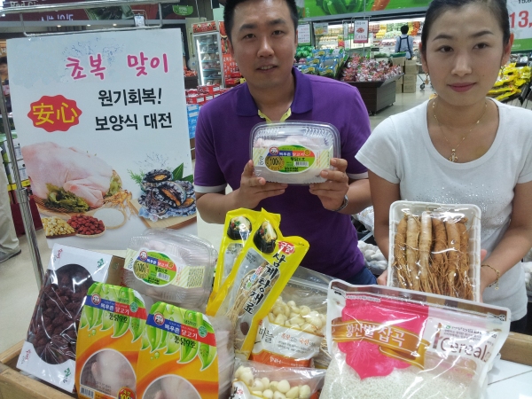 농협하나로클럽은 이번 행사에서 삼계탕용 생닭 530g을 990원(1인2수/일300수)으로 70% 할인된 가격에 판매하며, 찹쌀 4㎏ 1만 1700원, 활전복 100g 7800원, 바다장어 2미 9900원 등 최대 40% 할인 판매한다.