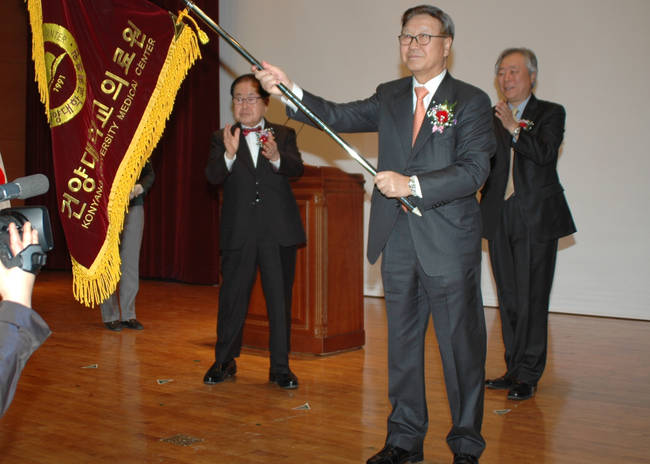 박창일(65) 전 연세대 의료원장이 건양대 의무부총장 겸 제7대 의료원장으로 공식 취임했다.건양대병원은 21일 대전캠퍼스 명곡홀에서 김희수 총장을 비롯한 교직원과 송 자 전 연세대 총장, 자유선진당 변웅전 의원, 최병렬 전 서울시장 등이 참석한 가운데 의료원장 이.취임식을 가졌다.박 신임 의료원장은 이날 취임사를 통해 “최고의 의료서비스를 제공해 적어도 중부 지역의 환자들이 굳이 서울의 큰 병원으로 찾아갈 필요가 없도록 하겠다”며 "오는 2020년까지 건양대병원을 전국 베스트 10 병원으로 성장시키도록 노력하겠다”고 말했다.박 원장은 이를 위해 병원 경영과 진료 분야에서 최적의 시스템 기반을 만들고 JCI(국제의료기관평가위원회) 인증도 박차를 가할 계획이다. 이와 함께 행복한 직장 분위기 조성에도 만전을 기한다는 방침이다.건양대병원 인근 진잠 출신인 송 자 전 연세대 총장은 이날 축사에서 “원스톱이 아닌 논스톱서비스를 구현하는 찾아가는 병원상을 구현해달라"고 당부한 뒤 "의료 특화를 통해 전세계의 모든 이가 찾는 건양대병원이 되겠다는 비전을 실현하길 바란다”고 말했다.재활의학을 전공한 박 원장은 2006년 아시아 대륙 의사로는 처음으로 세계재활의학회(ISPRM) 회장을 지내는 등 재활의학분야의 발전을 이끌어 온 최고 권위자다. 연세대의료원장으로 재직하던 2009년에는 김대중 전 대통령 서거 브리핑을 맡아 국내뿐 아니라 세계 언론의 집중조명을 받기도 했다.건양대 의료원은 하영일 전 의료원장에게 특별공로패를 수여했다.