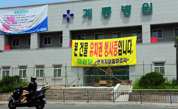 현재 계룡병원 본관과 별관에는 공사대금을 받지 못한 건설업체 등이 유치권을 신고해놓고 있다.