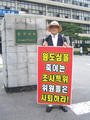중구의회를 타깃으로 삼은 이날 장 회장의 1인 시위에 대해 일부 주변 상인들은 자칫 ㈜갑산을 옹호하고 그들의 입장을 대변하는 듯한 오해를 불러일으킬 수 있다는 우려를 표명하면서 실질적인 대책 마련을 호소했다.