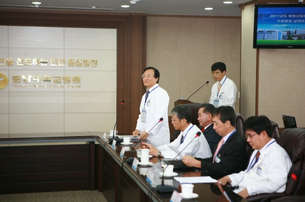 충남대병원(원장 송시헌)은 7일 오전 9시부터 오후 5시 30분까지 행정동 3층 세미나실 및 대전지역암센터 2층 강당에서 대한병원협회로부터 ‘2011년도 병원신임평가 및 수련병원 실태조사’를 받았다.