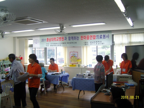 충남대병원(원장 송시헌) 의료진 등으로 구성된 한마음연합의료봉사단이 지난 21일 충남 연기군 금남초에서 의료봉사활동을 펼쳐 주민들로부터 열띤 호응을 받았다.