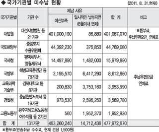 특히 국가기관별 전체 미수납금 중 7개월 이상의 악성 미수납액은 96.5%에 달해 체납이 관행화된 것 아니냐는 지적을 받고 있다.