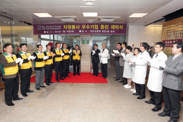 대전선병원은 대전시와 대전시자원봉사지원센터가 지난해 기업내 봉사동아리 활동을 심의한 결과, ‘2011 자원봉사 우수기업’으로 선정돼 19일 현판 제막식을 가졌다고 밝혔다.