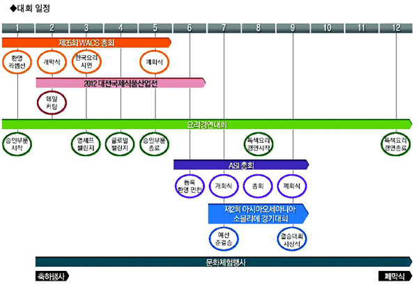 5월 1일부터 12일간 ‘한국인의 손 맛! 세계인의 입 맛!’을 주제로 펼쳐지는 ‘2012 대전세계조리사대회(WACS Congress 2012 Daejeon)’ 얘기다.
