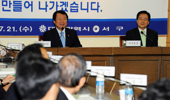 염홍철 대전시장은 21일 서구청을 초도방문 한 자리에서 나이스 그룹 본사를 대덕특구에 유치하겠다고 밝혔다. 이 날 염 시장은 “대덕테크노밸리에 나이스 그룹 본사이전을 추진하고 있다”며 “일자리 창출을 위한 표본으로 삼고 지속적인 대기업 유치에 나서겠다”고 강한 의지를 표출했다.그는 또 “제주도 올레길은 대전의 생태탐방로 둘레길을 보고 만든 것이다. 우리 대전에도 친환경적 요소가 많다”며 “개발주의를 탈피해 동물원과 플라워랜드, 수목원이 있는 대전을 최고의 도시로 만들겠다”고 강조했다.마지막으로 그는 서구를 의료관광의 메카로 만들겠다는 의지를 표명했다.그는 “각 연구원과 대학 5개 등 대전이 확실한 인프라를 구축하고 있다. 특히, 전국에서 1인당 병원, 의사가 가장 많은 도시가 바로 대전이다”며 “이 같은 장점을 십분 활용해 의료관광단지를 조성하겠다”고 밝혔다.외국인들이 성형수술, 암 치료, 물리치료 등 의료관광을 할 수 있도록 서구에 의료관광단지를 만들겠다는 것이 염 시장의 구상이다.