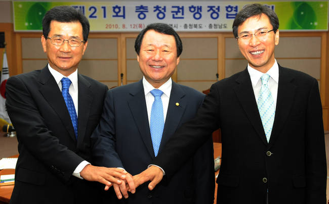 대전과 충남, 충북이 충청권을 대명제로 상생의 동행을 시작했다.명운이 달린 충청권 최대 현안임에도 중앙 정부에 밀려 가시방석 위에 놓인 세종시와 과학벨트 정상 관철이 ‘연대’의 선봉에 섰다.충청권 3개 시·도와 광역의회, 지역 정치권, 시민사회단체 등이 참여하는 ‘행정도시 정상추진 충청권 공동대책위원회(이하 공대위)는 12일 충남도청 대회의실에서 출범식을 갖고 본격적인 활동에 돌입했다.공대위는 선언문에서 “그동안 충청권은 행정도시 정상 추진을 위해 협조하기보다는 정파적 논리 및 이해관계에 따라 움직였다”면서 “이제부터는 민·관·정이 충분히 소통하고 힘과 지혜를 모아야 한다”고 의지를 다졌다.이에 앞서 염홍철 대전시장과 안희정 충남지사, 이시종 충북지사는 이날 오전 제21회 충청권 행정협의회를 통해 민선 5기 출범 후 첫 공식 회의를 갖고 세종시 정상 추진과 국제과학비즈니스벨트 충청권 조성을 강력히 촉구했다. 특히 과학벨트와 관련, 대통령의 충청권 공약인 만큼 충청권 입지를 명문화한 ‘국제과학비즈니스벨트 조성 및 지원에 관한 특별법을 조속히 제정, 약속대로 이행하라고 정부를 압박했다.이어 벌어진 충청권광역경제발전위원회에서는 위원회의 무용론을 도마 위에 올렸다.3개 시·도지사는 위원회를 계획만 무성하고 실천이 없는 속 빈 강정으로 규정하고, 실질적인 역할을 해 줄 것을 주문했다.
